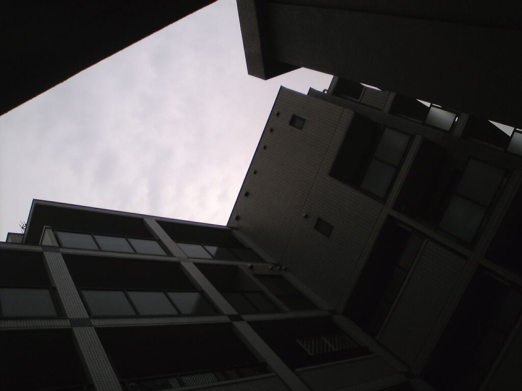 ビルのせめぎあう場所からでも、空は見えた………………曇り空だけども(笑